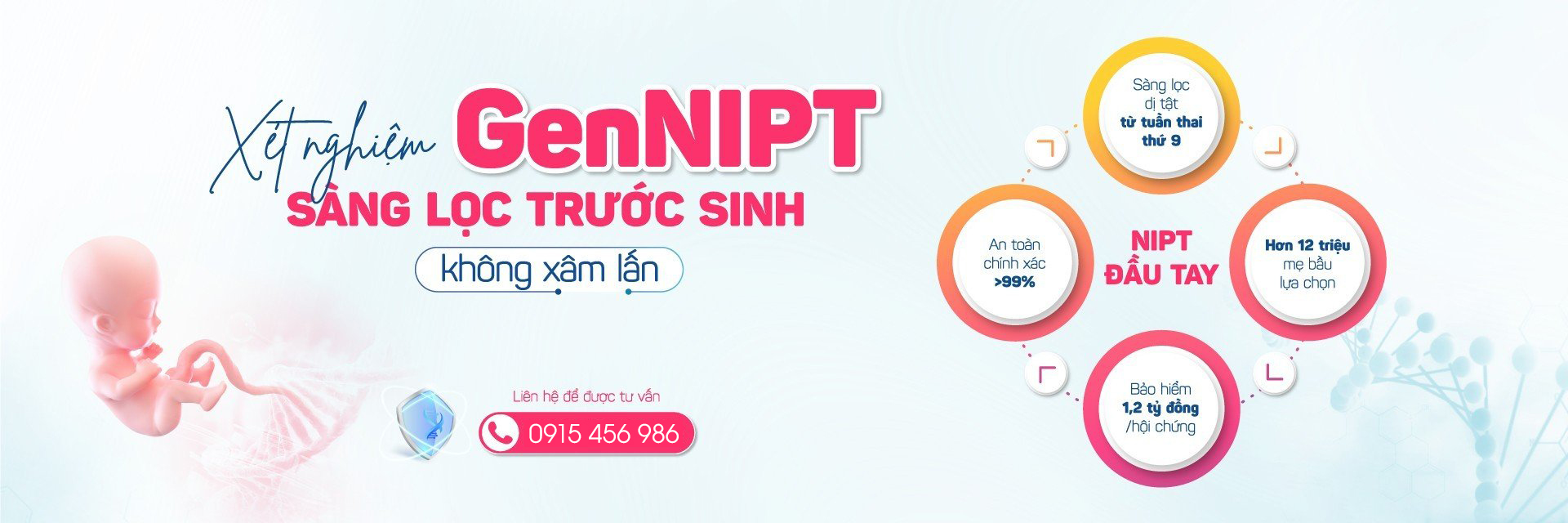 Xét nghiệm NIPT (Non-Invasive prenatal testing) giúp phát hiện các nguy cơ dị tật thai nhi nghiêm trọng do bất thường số lượng nhiễm sắc thể. Năm 2020, Bộ Y tế Việt Nam đã chính thức đưa phương pháp xét nghiệm không xâm lấn NIPT vào quá trình sàng lọc dị tật thai nhi, tầm soát các bất thường về số lượng nhiễm sắc thể trong quá trình chăm sóc thai kỳ của thai phụ qua quyết định 1807. Theo chuyên gia, bất kỳ phụ nữ nào mang thai từ tuần thứ 9 đều nên làm xét nghiệm NIPT. Hãy thực hiện ngay xét nghiệm NIPT để giải tỏa lo lắng, giúp yên tâm suốt thai kỳ, bởi các dị tật bẩm sinh có thể hình thành trong hệ gen khi cả cha và mẹ đều khỏe mạnh nhưng không có biểu hiện bệnh tật.