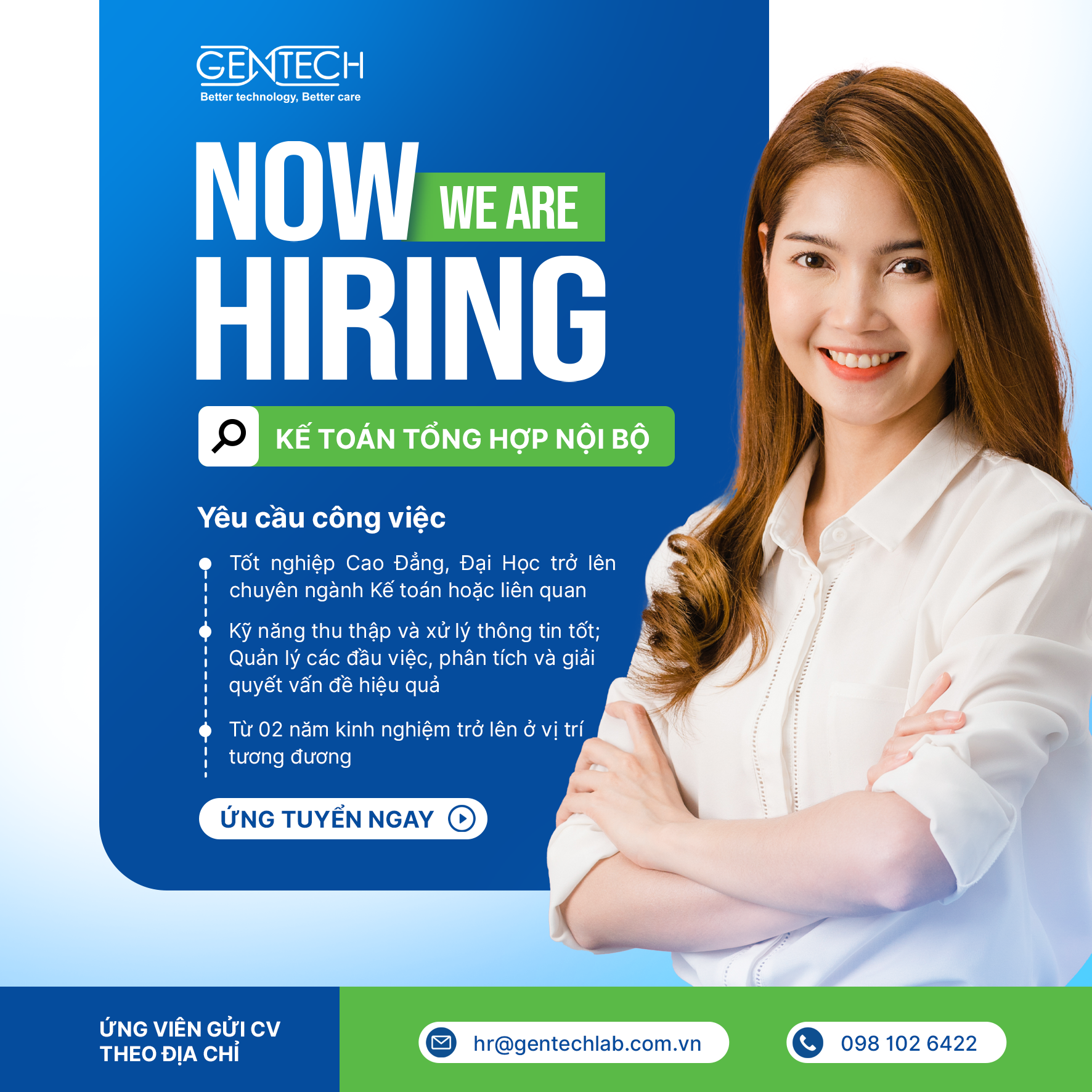 Nhằm mở rộng quy mô hoạt động và nâng cao chất lượng dịch vụ, GENTECH chính thức triển khai chương trình tuyển dụng tháng 5/2026 với nhiều vị trí quan trọng.